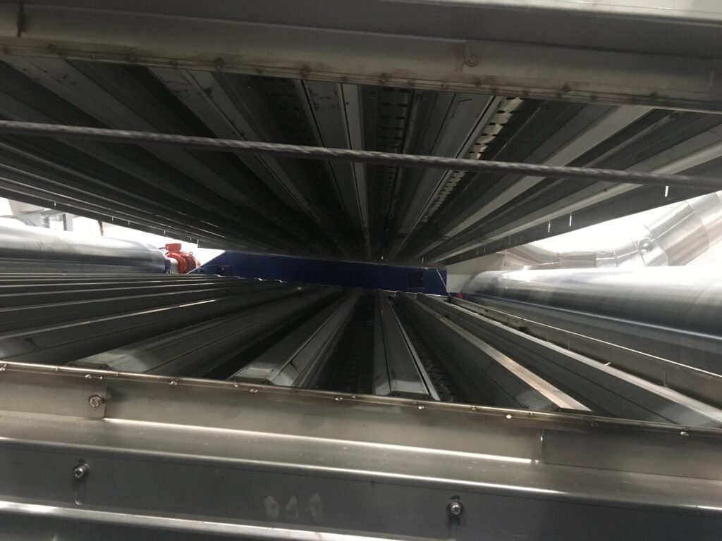 Coolers using ambient air or chilled air for cooling the product to the required temperature to enable processing the next step.