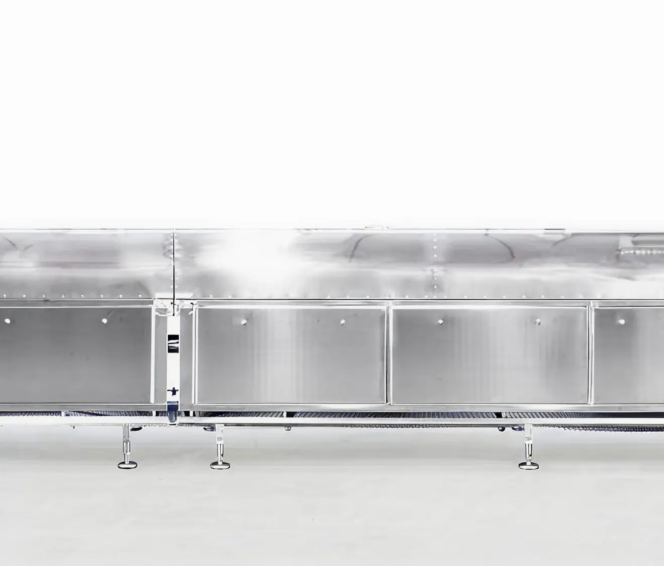 A complete MicroWave Tunnel solution for food-product curing harnesses advanced microwave technology, trusted by leading pre-cooked food manufacturers worldwide. The system integrates microwave curing with optional infrared and air sections, allowing precise customisation of baking and curing profiles to match specific production requirements.